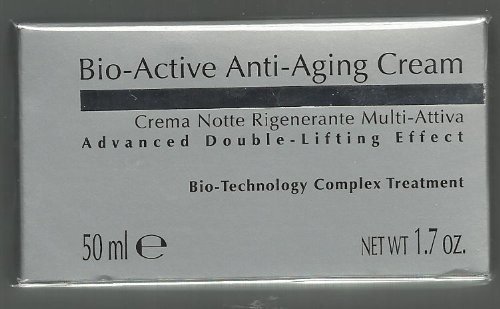 Bio-Active Anti-Aging Cream Multi-Action Regenerative Night Cream with Advanced Double-Lifting Effect.As we age, our once youthful, healthy skin succumbs to an enzymatic imbalance that wears away the cellular network, resulting in skin thinning and aging.Combining the best of nature and cosmetic biotechnology, Bio-Active products are formulated with Enzymes that gently exfoliate the skin and stimulate regeneration for a youthful glow.Benefiting from fertile orchards in the Italian countryside, Bio-active formulas are rich in phytohormones, flavonoids and fatty acids from active extracts in Apple and Pear Seeds ,enzymatically modified and developed especially for the care of aging skin.This reparative Night Cream helps to firm and renew skin while you sleep.