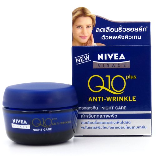 Nivea Visage Anti- Wrinkle Night Cream contains 100% more Coenzyme Q10. With double the strength of Q10, it supports the skin's energy metabolism from within to continuously fight wrinkles. The intensively moisturising formula replenishes & regenerates skin at night, when it is most receptive to moisture intake.