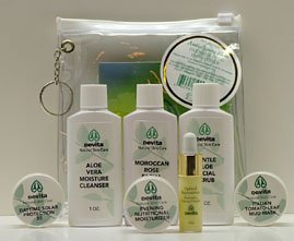 This new style kit is filled with the regieme designed for the individual wishing to try Devita Natural Skin care Products for their individual skin type. Packaged in a handy key ring tote. A Perfect way to Sample! All ingredients are Paraben-Free and Vegan Approved! Kit Includes: Aloe Vera Moisture Cleanser, 1 oz. Moroccan Rose Facial Toner, 1 oz. Gentle Aloe Facial Scrub, 1 oz. Daily Solar Protective Moisturizer 30, 1/4 oz. Evening Nutritional Moisturizer, 1/4 oz. Italian Tomato Leaf Mud Masque, 1/4 oz. Optimal Rejuvenation, 1/8 oz.